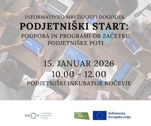 Začni svojo podjetniško pot z nami! Se podajaš na podjetniško pot, pa ne veš kje začeti? Si mladi podjetnik ali podjetnica začetnica? Iščeš pravo podporo, znanje in mentorstvo? Pridruži se nam na informativnem dogodku, kjer ti predstavimo: Javni poziv JPMŽ …