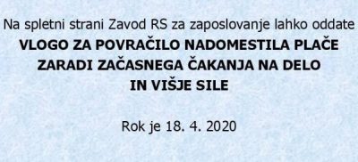 Po novem zakonu bodo na Zavodu izplačevali povračilo nadomestilo plače zaposlenim za začasno čakanje na delo in zaradi odsotnosti zaposlenih iz razlogov višje sile.Do povračila nadomestila plače so upravičeni delodajalci, ki: